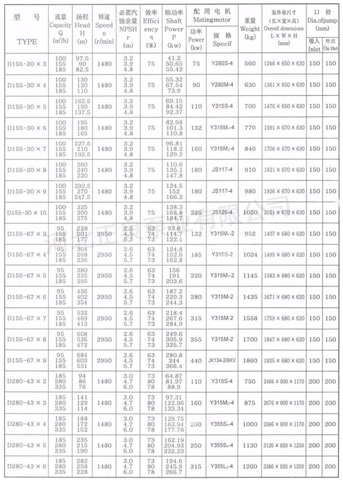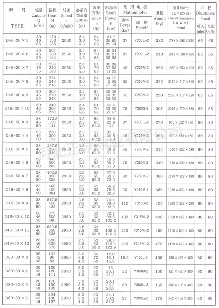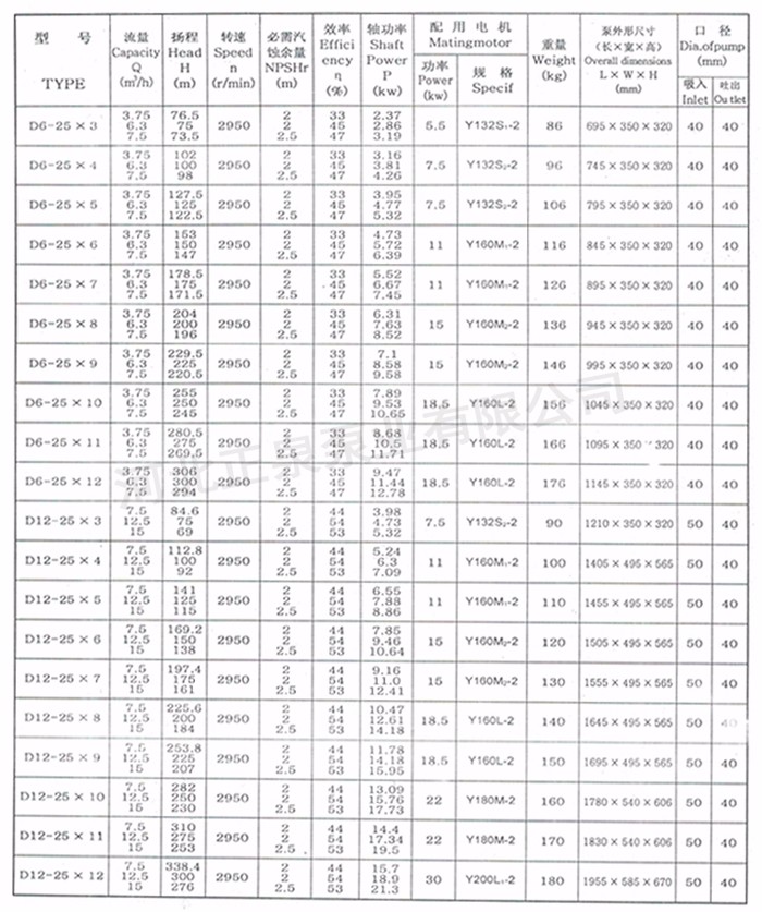 揚程范圍:H=50~600m