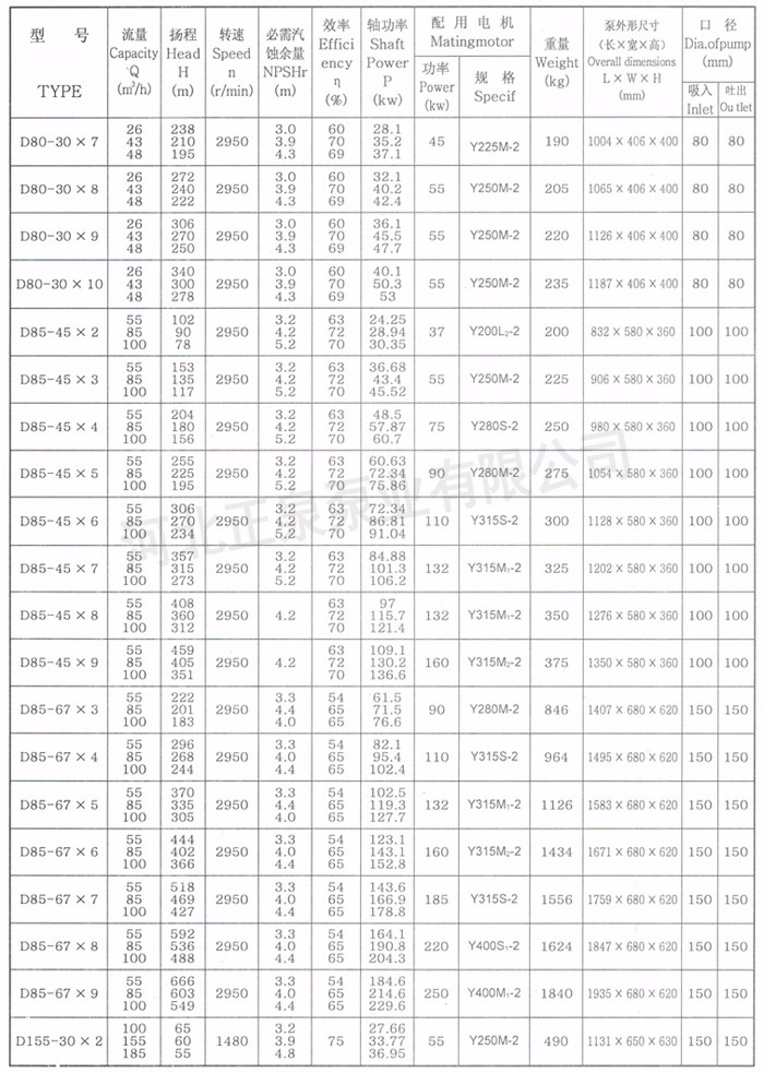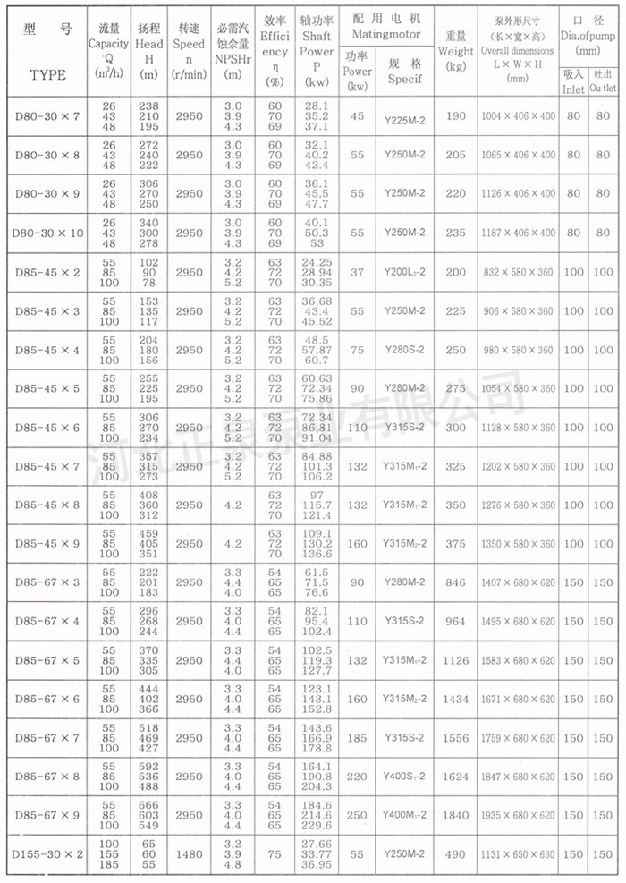 D、DG型泵系臥式、單吸多級、分段式離心泵。具有效率高、性能范圍廣、運行安全平穩、噪音低、壽命長、安裝維修方便等特點。供輸送清水或物理化學性質類似于水的其它液體。也可以通過改變泵過流部件材質、密封形式和增加冷卻系統用于輸送熱水、鍋爐給水泵,不含固體顆粒的液體。適用于工業礦山給水泵和城市給排水、高層建筑增壓供水,園林噴灌、消防增壓、遠距離送水、采暖、浴室等冷暖水循環增壓及設備配套等,尤其適用于小型鍋爐給水,高壓給水泵,高揚程清水泵等。